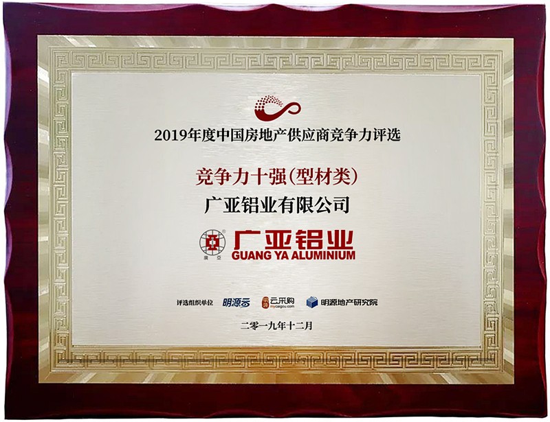 廣亞鋁業(yè)榮登“2019年度中國房地產供應商行業(yè)競爭力十強”榜!