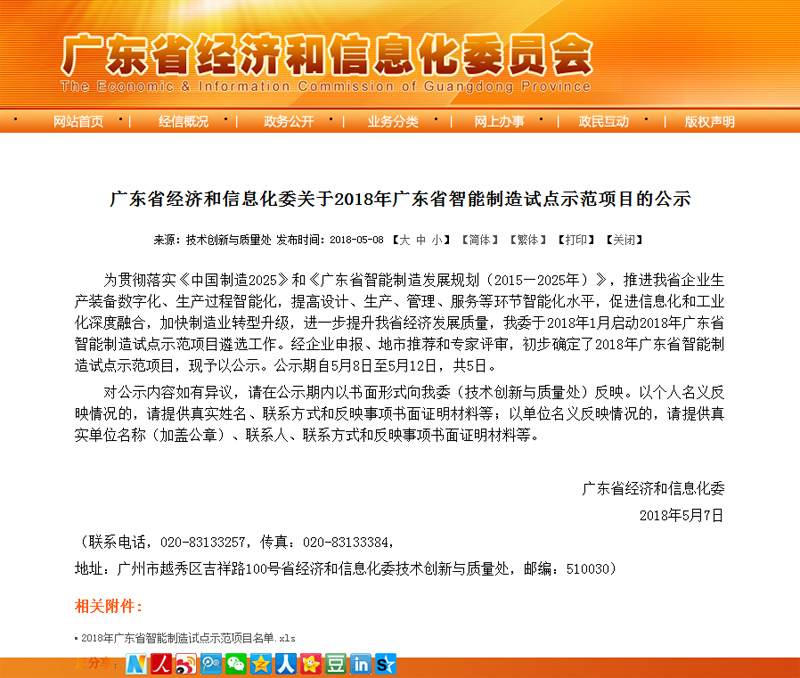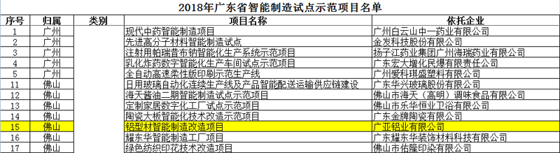 喜訊:廣亞鋁業(yè)入選2018年廣東省智能制造試點示范項目企業(yè)
