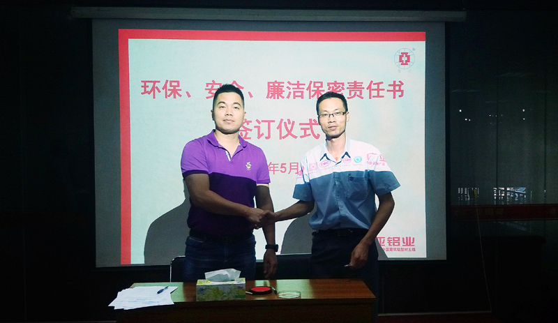 全面強化管理責任,廣亞鋁業(yè)事業(yè)部舉行環(huán)保、安全、廉潔保密責任書簽訂儀式。