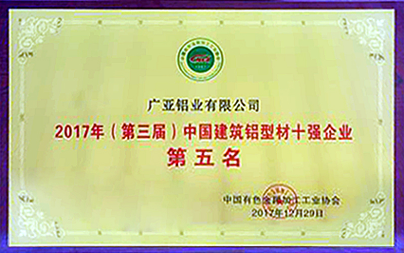 廣亞鋁業(yè)榮獲中國建筑鋁型材五強