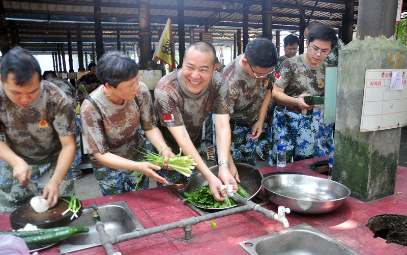 一起動(dòng)手洗菜做飯(笑得最甜,吃得最多)