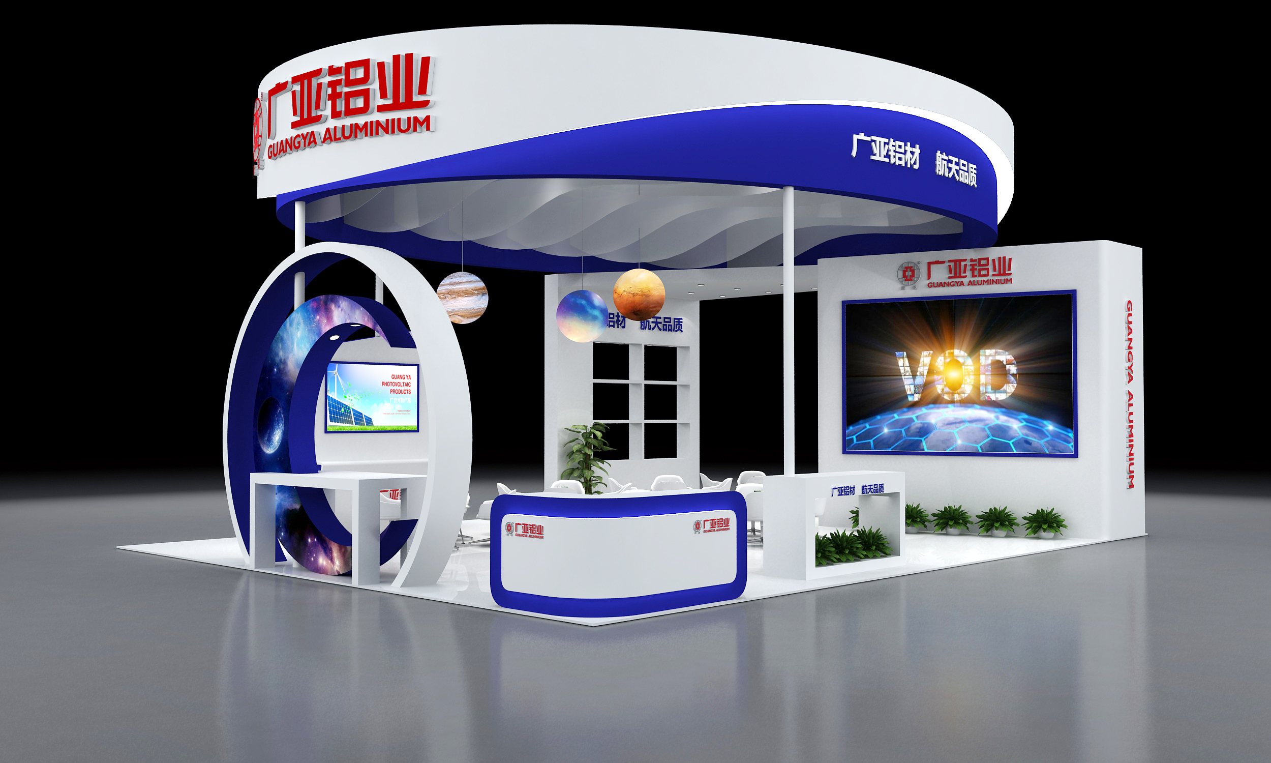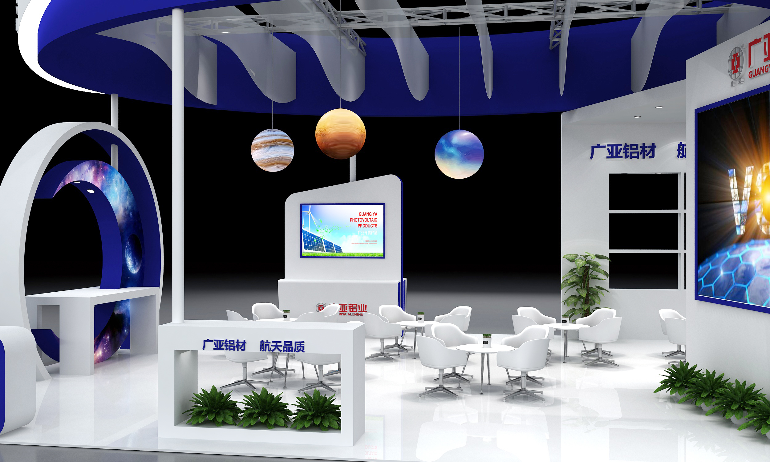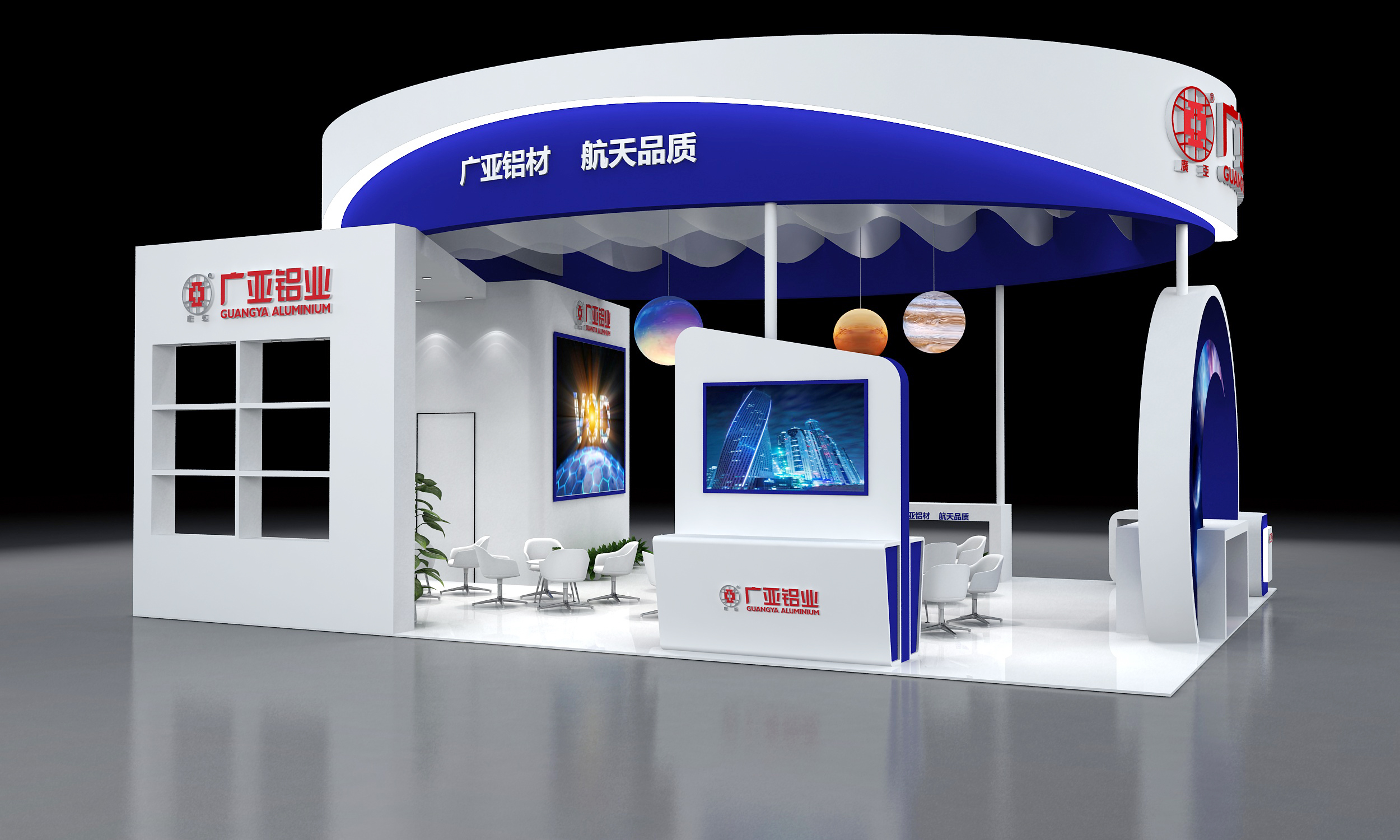 廣亞鋁業(yè)的大型展位沿襲經(jīng)典的藍(lán)白色主背景,簡(jiǎn)潔明朗的“鋁工業(yè)風(fēng)”搭配航天元素,讓人眼前一亮,忍不住駐足。
