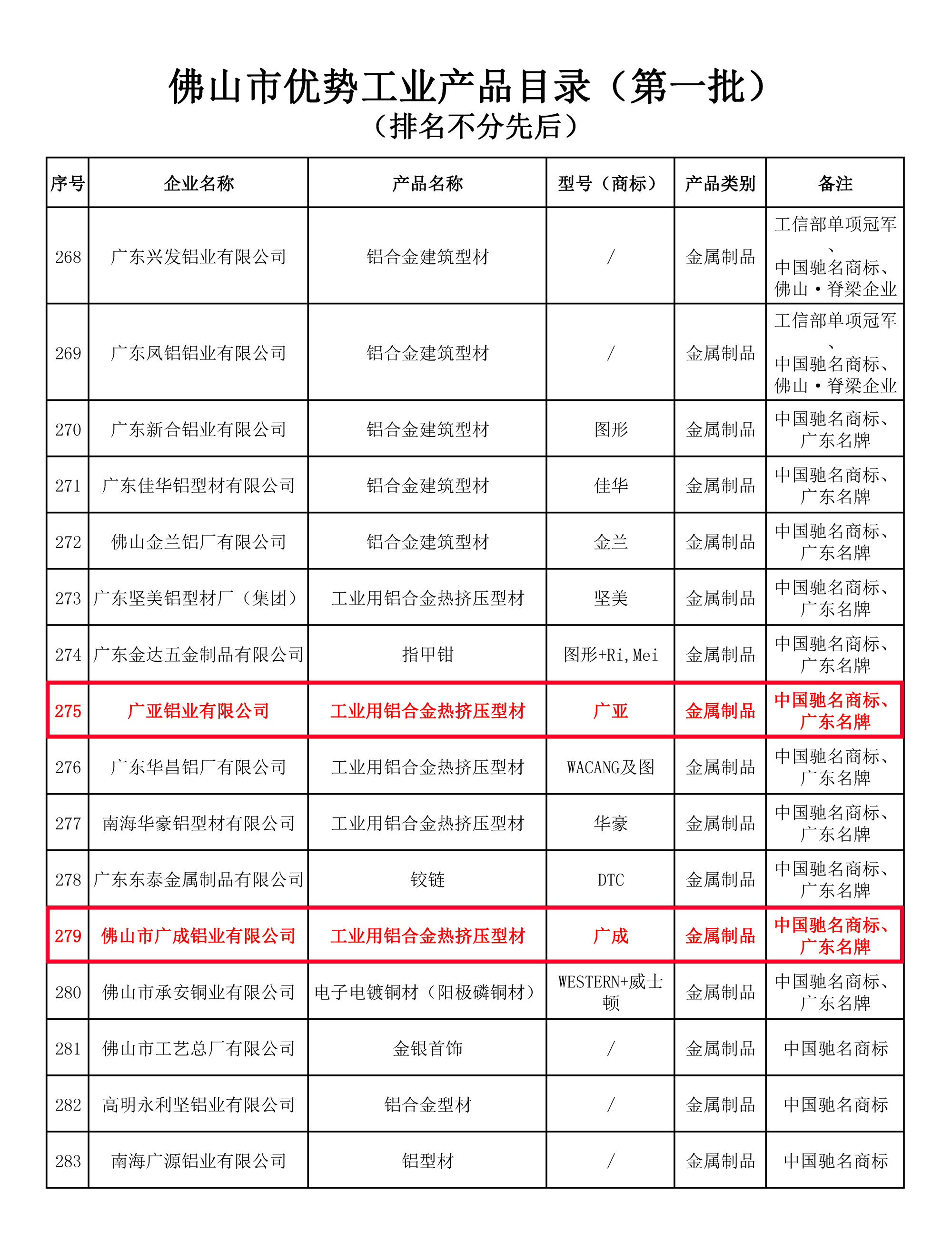 廣亞鋁業(yè)和廣成鋁業(yè)產(chǎn)品雙雙入選佛山市首批優(yōu)勢(shì)工業(yè)產(chǎn)品