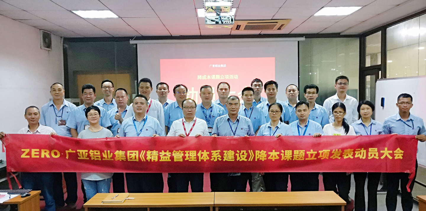 為推進精益管理體系建設,強化生產系統(tǒng)降本增效,8月15日,在零牌顧問專家的指導下,廣亞鋁業(yè)集團《精益管理體系建設》降本課題立項發(fā)表動員大會在廣亞鋁業(yè)南海基地舉行。零牌顧問機構廖為富、李藝鋒、黃日星、吳帆四位老師到場指導。集團鋁業(yè)事業(yè)部李英凱總經理、廣亞生產基地溫永勝總經理及生產、財務、采購等相關部門負責人參加了動員大會。