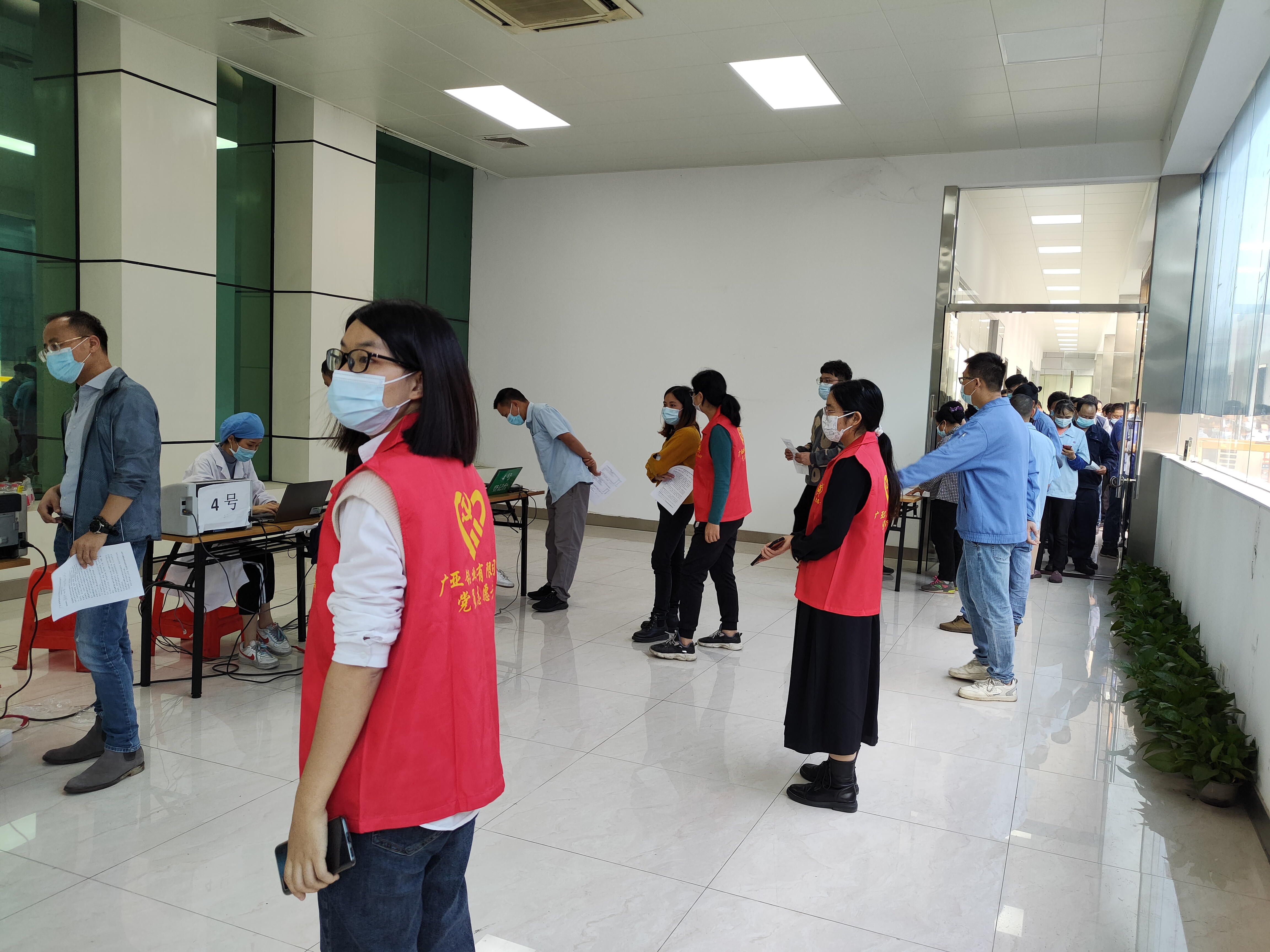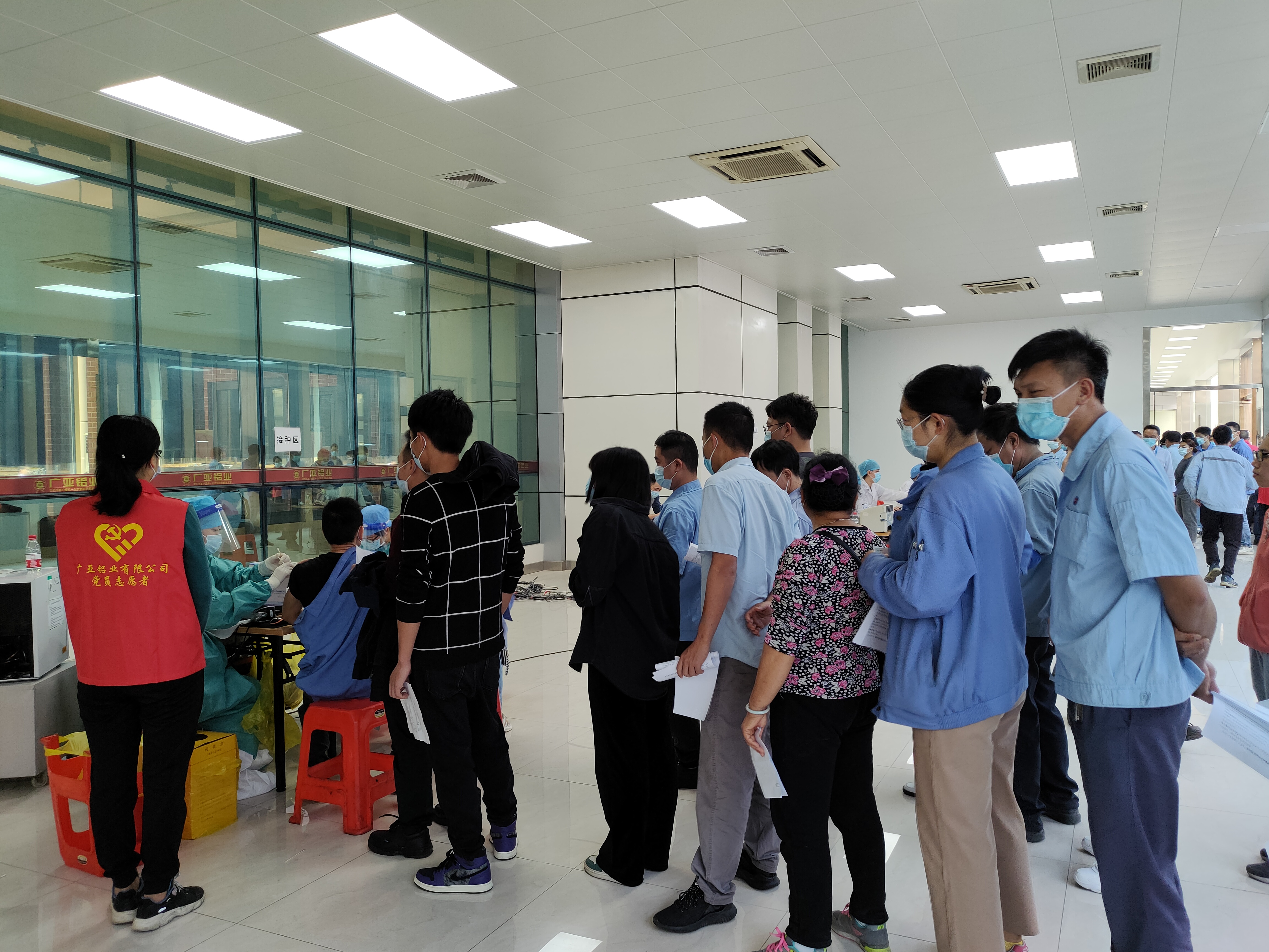 隨后在我司黨支部黨員志愿者的引導(dǎo)下,廣亞職工按流程依次注射和留觀,用自身實際行動為筑牢免疫長城貢獻(xiàn)“一臂之力”。在此,廣亞鋁業(yè)向疫苗接種一線工作
