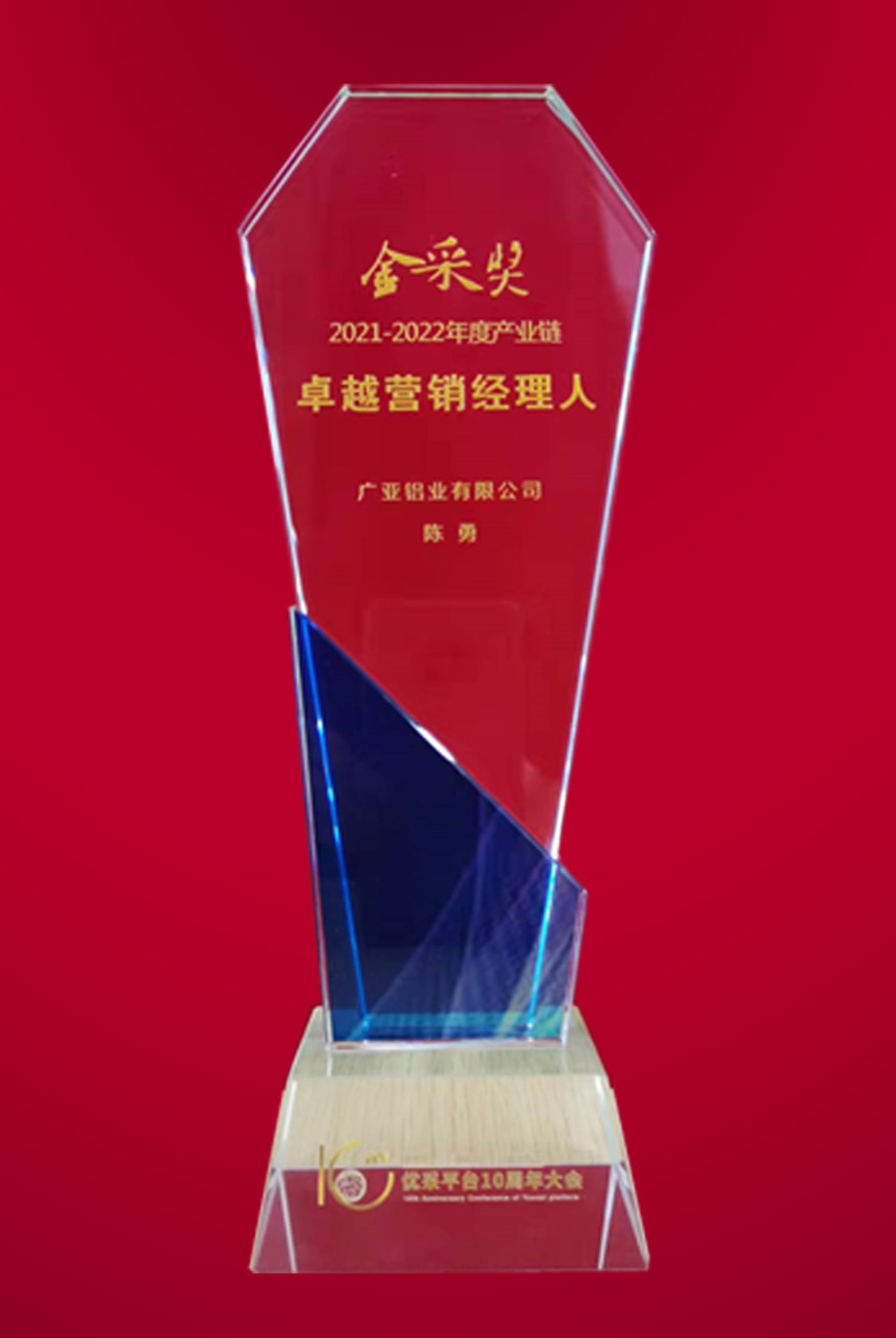 廣亞鋁業(yè)營銷總經(jīng)理陳勇、營銷副總經(jīng)理蔣炎華分別被授予優(yōu)采“金采獎”——2021-2022年度產(chǎn)業(yè)鏈“卓越營銷經(jīng)理人”、“卓越工程經(jīng)理人”稱號,向行業(yè)各界展示了
