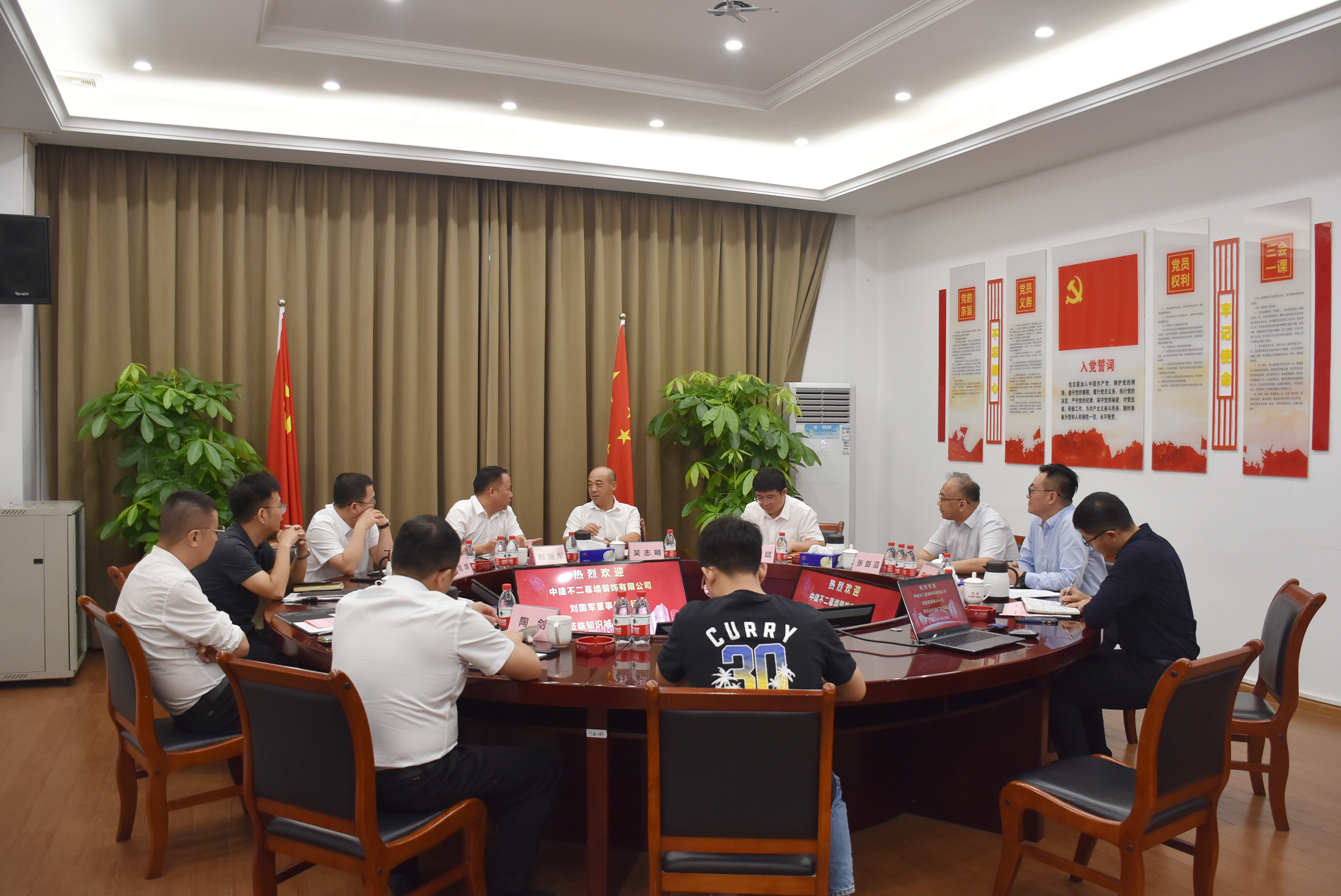 6月8日上午,中建不二幕墻裝飾有限公司(以下簡(jiǎn)稱“中建不二”)黨委書(shū)記、董事長(zhǎng)、總經(jīng)理劉國(guó)軍,副總經(jīng)濟(jì)師劉盛彪,總經(jīng)理助理谷小惠,華南分公司黨總支書(shū)記、總經(jīng)理陶劍蒞臨知識(shí)城廣亞(廣州)控股集團(tuán)有限公司(以下簡(jiǎn)稱“知識(shí)城廣亞”)參觀考察并舉行交流座談會(huì)。知識(shí)城廣亞董事長(zhǎng)吳志明、常務(wù)副總經(jīng)理嚴(yán)偉斌、副總經(jīng)理張劍滔以及相關(guān)部門(mén)負(fù)責(zé)人陪同參觀并參加座談會(huì)。