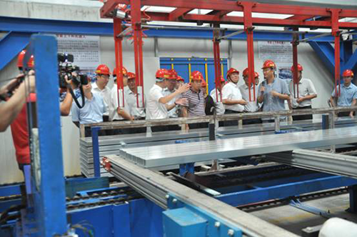 中國空間技術(shù)研究院黨委書記趙小津、副院長史平彥和總經(jīng)濟師周宏等領導,省科技廳副廳長劉煒、省生產(chǎn)力促進會中心主任陳金德、省科技廳調(diào)研員梁宇寧等領導,佛山市常務副市長蔡家華、南海區(qū)區(qū)長顧耀輝、佛山高新區(qū)管委會主任劉濤根等政府領導參加完軍民融合項目對接會后抵達廣亞鋁業(yè)集團,參觀了廣亞鋁業(yè)集團聯(lián)同中國空間技術(shù)研究院下屬的北京控制工程研究所和廣東正來科技有限公司打造的智能制造試點生產(chǎn)線,以及參觀了廣東廣航科技有限公司設立在廣亞的航天產(chǎn)品設計、加工、裝配中心。