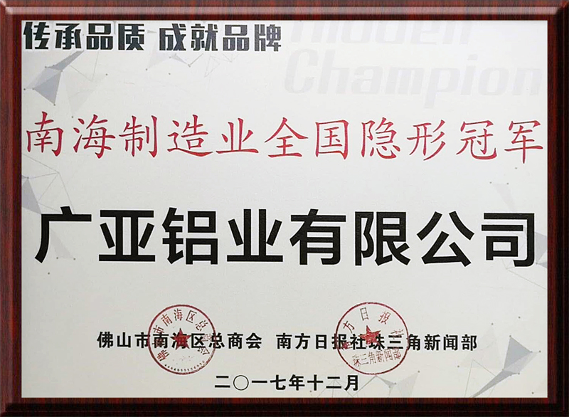 12月5日,由南??偵虝y手南方日報社,歷時6個月開展的“尋找南海制造業(yè)全國隱形冠軍”活動收獲首批成果。70家企業(yè)榮登“隱形冠軍企業(yè)”龍虎榜。廣亞鋁業(yè)集團憑借21年厚積薄發(fā),名列其中。