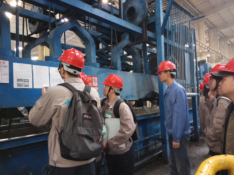 各車間負(fù)責(zé)人帶領(lǐng)學(xué)生深入生產(chǎn)一線,通過現(xiàn)場介紹、觀察、提問等方式,讓同學(xué)們了解每個生產(chǎn)環(huán)節(jié)的操作情況,使理論與企業(yè)生產(chǎn)實踐相結(jié)合,對鋁材生產(chǎn)各個環(huán)節(jié)有了更為直觀和深層次的認(rèn)識。