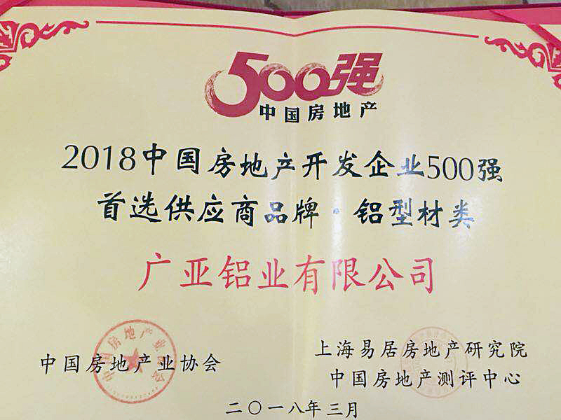 中國(guó)房地產(chǎn)開(kāi)發(fā)企業(yè)500強(qiáng)首選供應(yīng)商證書(shū) |